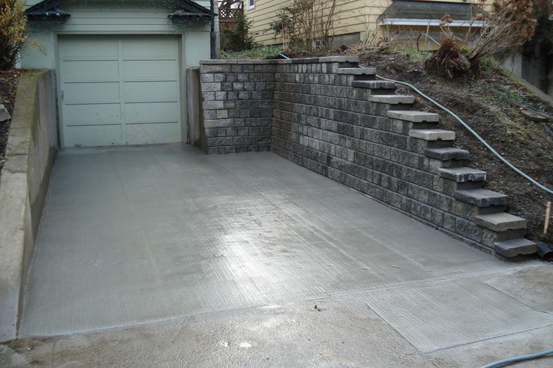 Description: Remove and replace existing concrete driveway. Move and relocate block retaining wall.