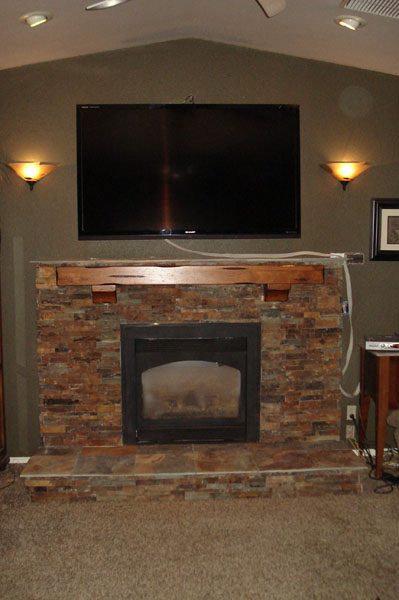 Description: Remove existing wood surrounding and install new rock wall with lighting
